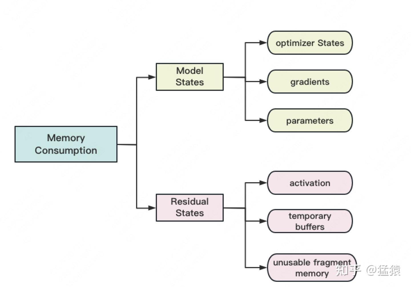 首先先看看模型计算过程中, 哪些过程需要被存储下来. 存储主要分为两大块:Model States 和 Residual States